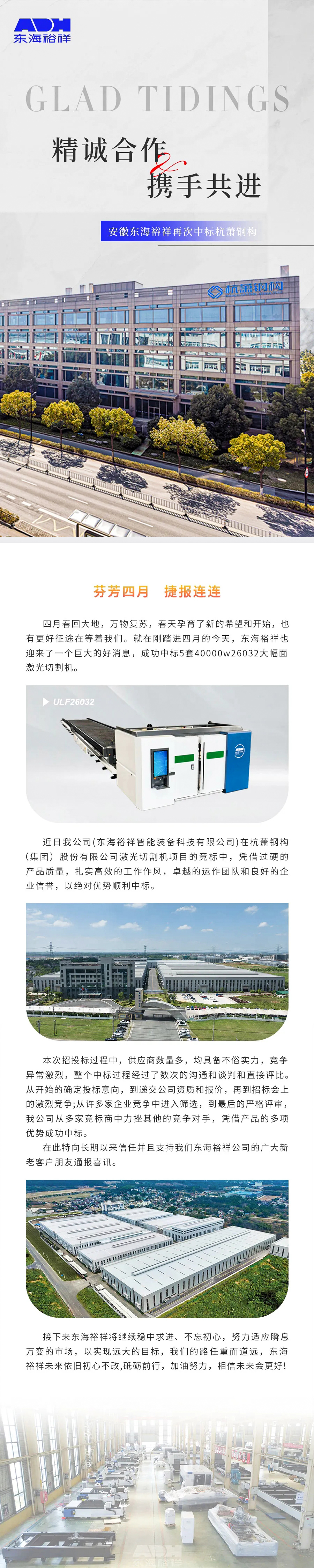 安徽東海裕祥大幅面激光切割機再次中標杭蕭鋼構!